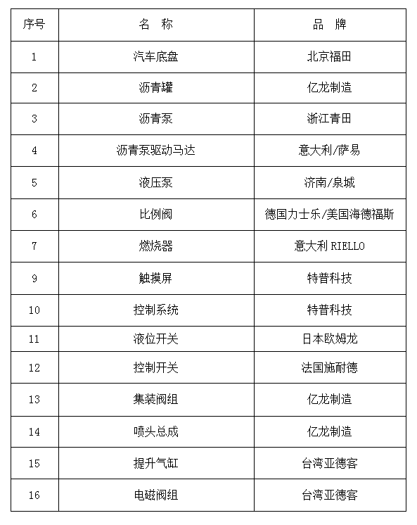 3、YLLS0945(國Ⅵ 標配型)全自動瀝青灑布車主要元器件配置